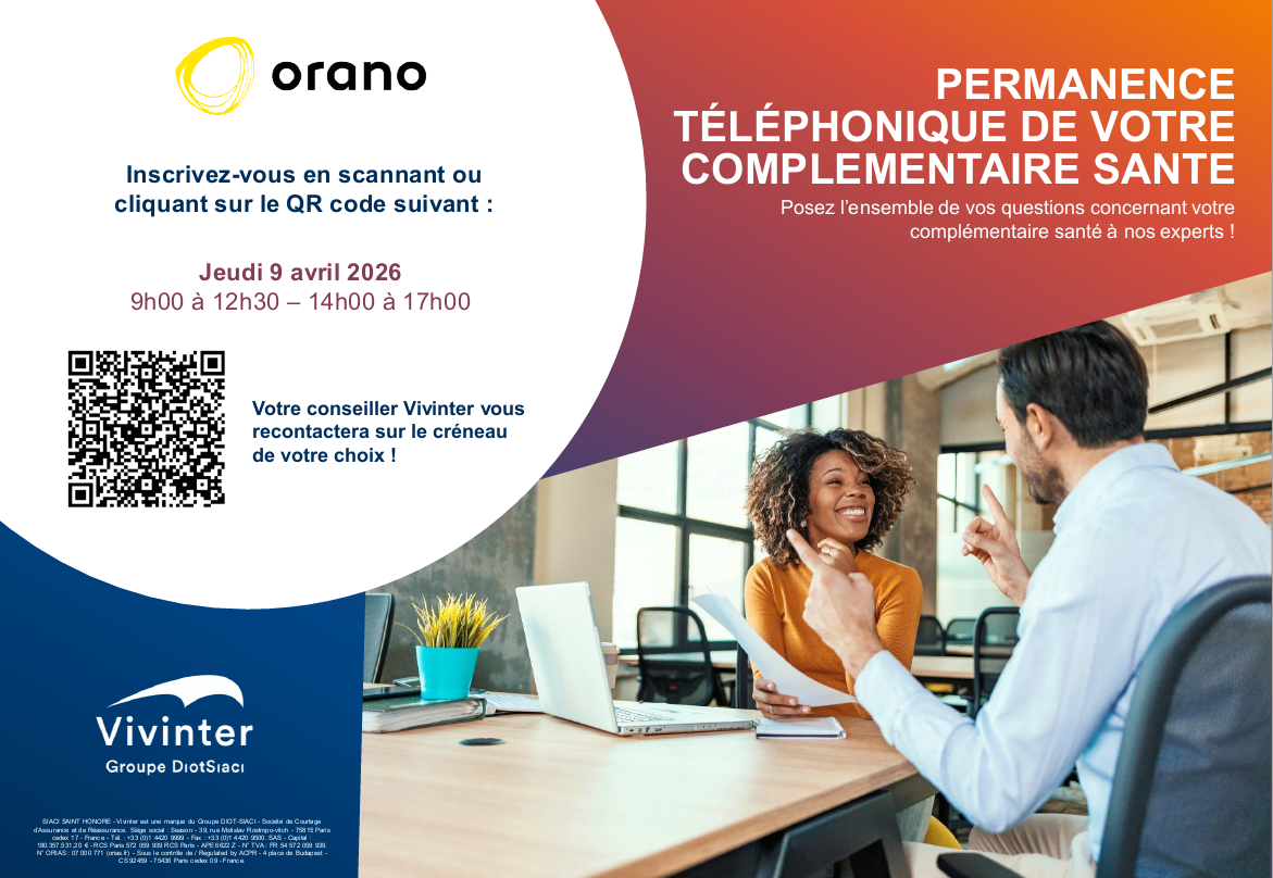 Dans le cadre d’un suivi de qualité, Vivinter met à disposition des salariés du groupe Orano des permanences téléphoniques/physiques dédiées pour répondre à toutes leurs interrogations sur leur dossier mutuelle santé.